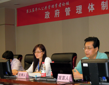 张红凤教授主持论坛报告会 6月2日-3日,由山东大学政治学与注册送彩金白菜 主办的第三届华人公共管理学者论坛在山东大学中心校区举行,注册送彩金白菜院长张红凤教授带队应邀参加。