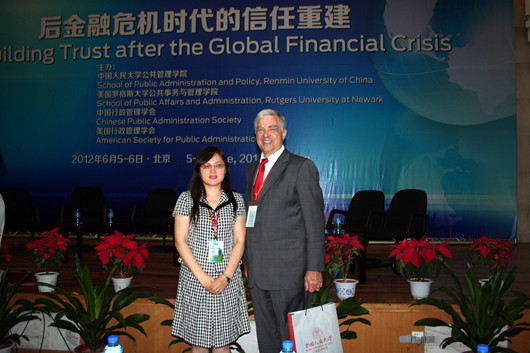 张红凤院长与美国《公共管理评论》主编James L. Perry合影 6月4日—6日,以“后金融危机时代的信任重建”为主题的第六届中美公共管理学术研讨会在中国人民大学举行,注册送彩金白菜院长张红凤教授应邀带队参加并受邀担...