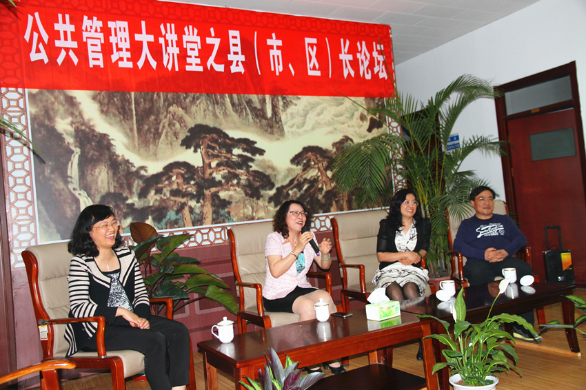 5月4日,应张红凤院长邀请,青岛市李沧区副区长孙晋华,济南市槐荫区副区长印东,淄博市沂源县副县长李玲,淄博市周村区副区长李寅萍出席公共管理大讲堂之县(市、区)长论坛。论坛由注册送彩金白菜
