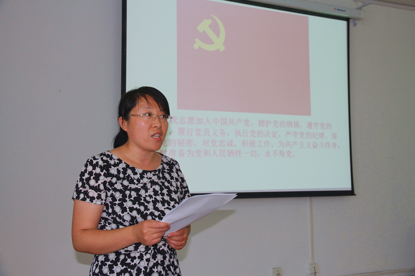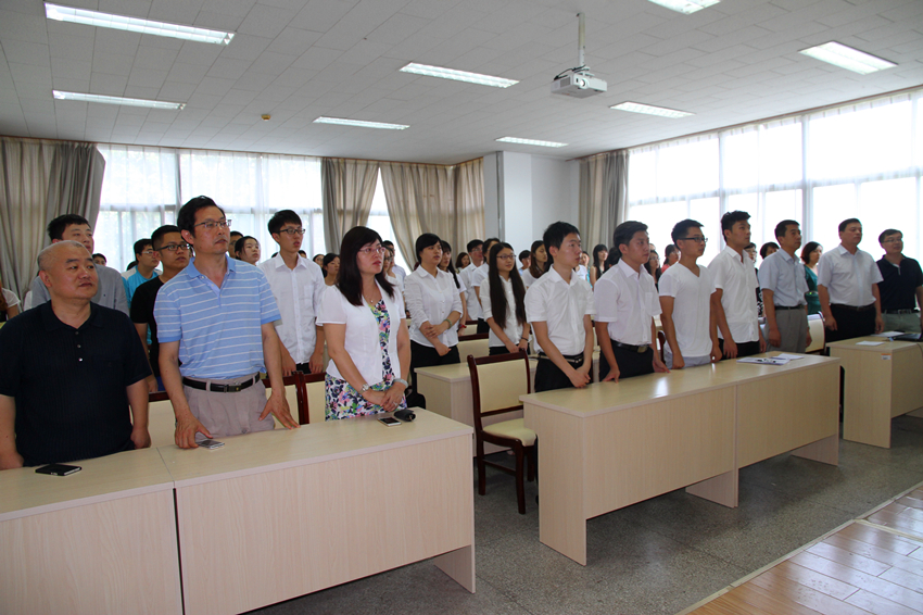 隆重举行2015年“七一”新党员宣誓大会,学院党委委员、教工党支部书记、学生党支部书记、本学期新发展的23名学生党员以及入党积极分子代表参加会议,会议由党委副书记周炎主持。