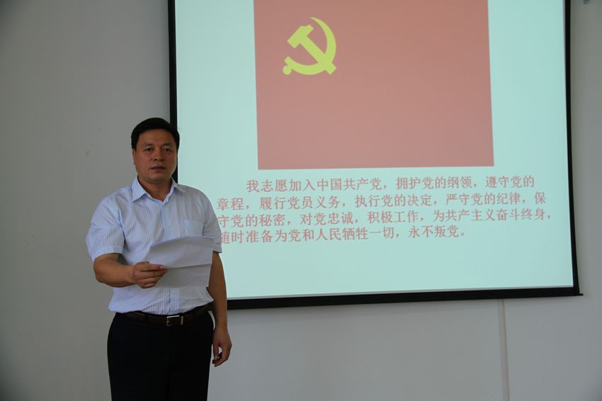 宣誓大会在雄壮的国歌声中开始,党委副书记周炎领读誓词进行宣誓,全体新党员举起右手,握紧拳头,面对党旗,庄严宣誓,这一时刻将永远铭记在全体党员内心深处,鞭策大家时刻以一名党员的标准严格要求自己。