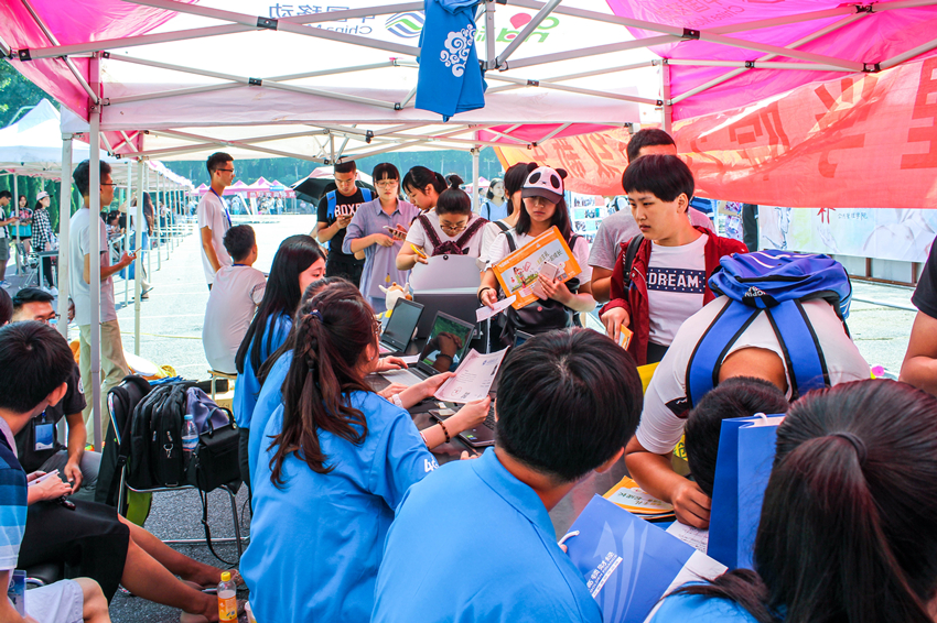 迎新工作在明水校区篮球场顺利展开,来自全国各地的518名新同学顺利报到、入住宿舍,截止到下午6点,迎新工作圆满结束。