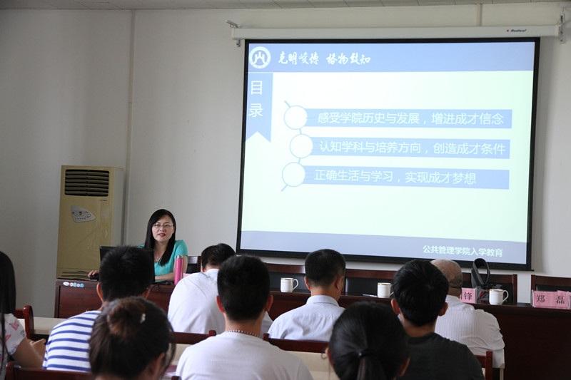 李国锋院长做了题为“走好研究生学习生涯的第一步”的报告。分别就“公共管理硕士点基本简介”、“成功的条件:专业能力与专业素养”、“走好研究生学习生涯的第一步”三个方面进行讲解。李院长的报告言辞幽默、生动有趣,为同学们在今后如何正确的进行课程学习与学术研究做出指导。最后,李院长提出了“不要问学校能为你做什么,要问问自己能为学校做什么”,要求同学们要提升专业能力与专业素养,准确定位,明确目标,在收获渊博学问的同时享受健康幸福的人生。