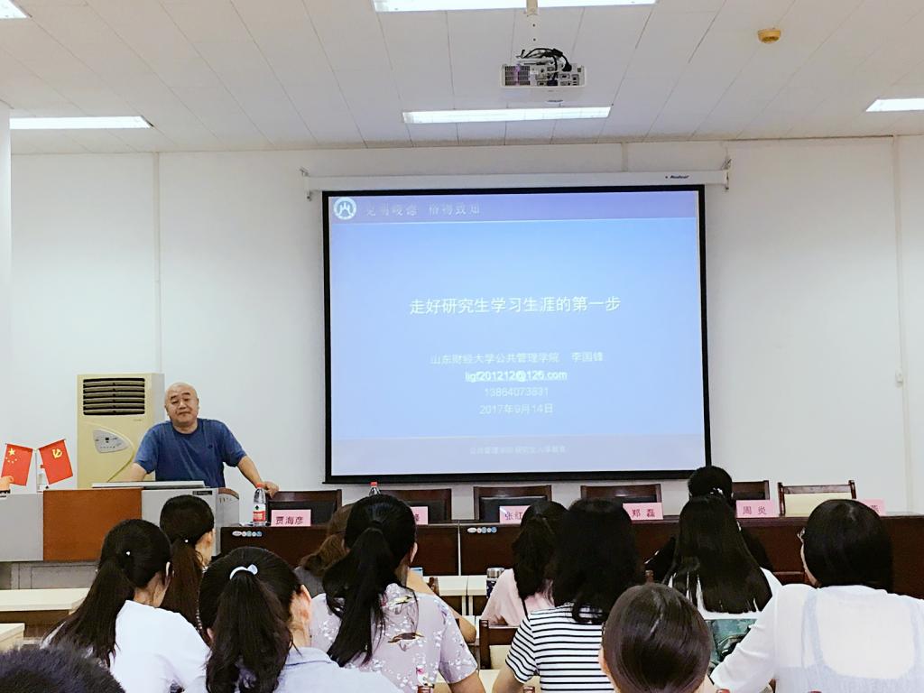 硕士点的基本情况简介、成功的条件与专业能力、专业素养的关系。通过向新生讲解一篇篇论文以激发学生们的研究兴趣,充分调动起新生对于学术探索的积极性,最后李国锋副院长就“走好研究生学习生活的第一步”进行了报告总结,赢得在场学生的热烈掌声。
