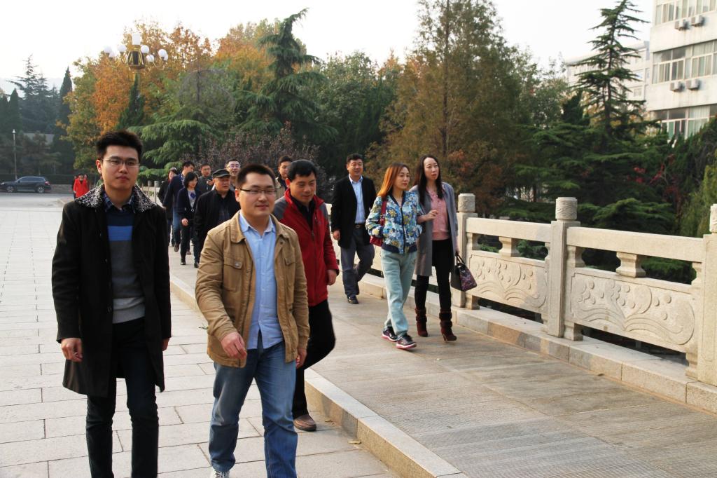 深秋的校园景色怡人,老师们怀着轻松愉悦的心情结伴而行,在秋风的吹拂下,欣赏沿途盛开的红叶,身心爽爽,轻松愉悦,谈笑风生。老师们在工作之余欣赏美景,放松心情,畅谈对工作和生活的感受,其乐融融。