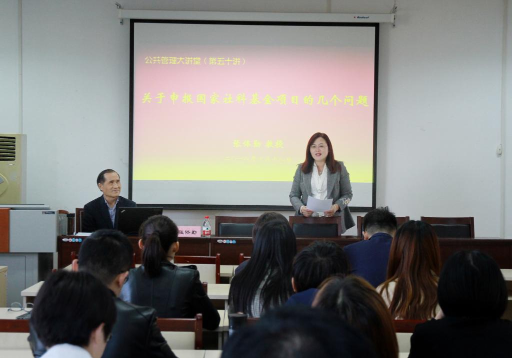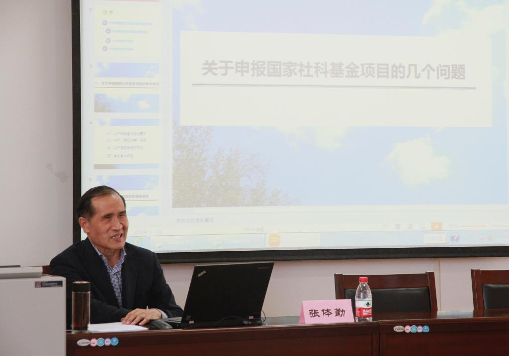 (通讯员 曲夏夏)10月18日下午,国家社科基金评审专家张体勤教授做客公共管理大讲堂,为全院教师献上了一场精彩的国家社科基金申报辅导讲座。张体勤教授从国家社科基金申报要求讲起,细致而深入地分析了课题名称凝练、选题依据、研究内容、思路方法、研究基础、条件保障等方面的写作方法和注意事项,用举例的方式深入浅出地剖析了项目申请的要义,为注册送彩金白菜教师申报2019年国家社科基金项目指明了方向。讲座获得与会教师的热烈掌声。张红凤院长主持并总结了本场讲座,贾海彦副院长、路军副院长及注册送彩金白菜科研骨干、教师代表列席参加。