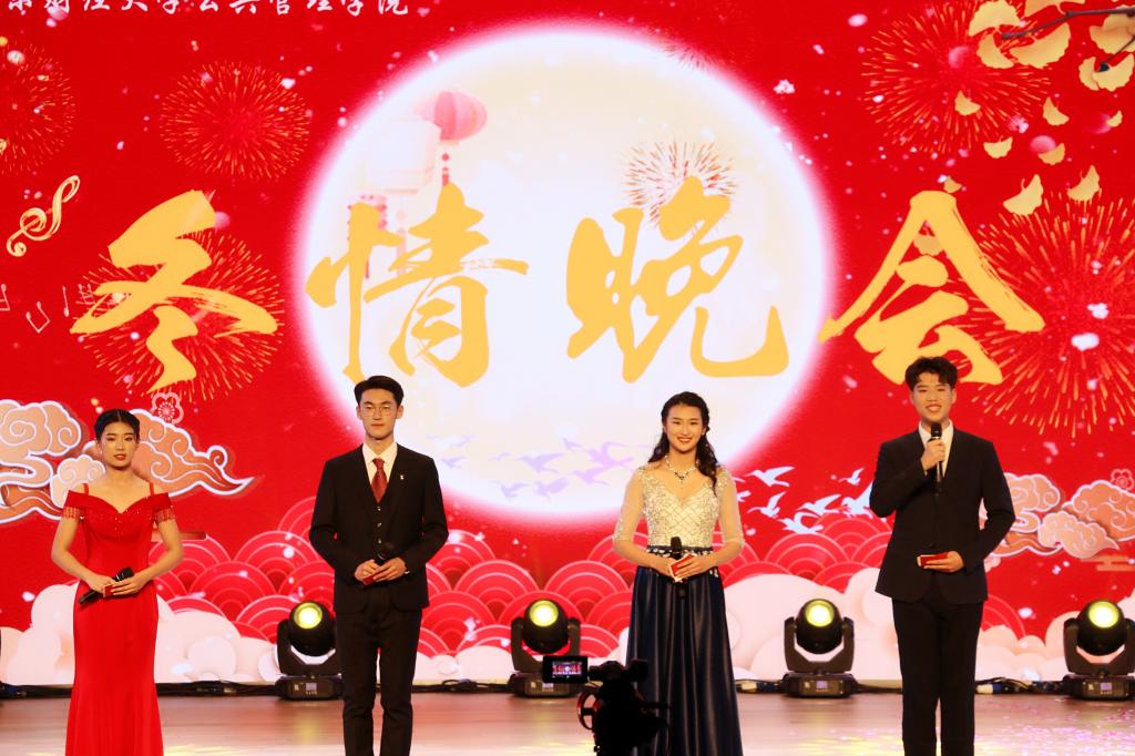 晚会首先迎来第一篇章:启程·公管心。由彩虹糖乐队为大家带来演唱《Lucky strike》和《红日》,点燃现场观众们的青春热血。衣袂翻飞、舞姿轻柔,古典舞《水月霓裳》为我们呈现出一场唯美的视觉盛宴。相声《大学日记》围绕大学新生活,并穿插精彩的贯口表演,让人拍案叫绝。一曲独唱《化身孤岛的鲸》,细腻优美的歌词、婉转的曲调和温柔治愈的嗓音,将那温暖的故事娓娓道来。小合唱《公管之歌》将“大道为公,善治天下”的院训精神诠释的淋漓尽致。