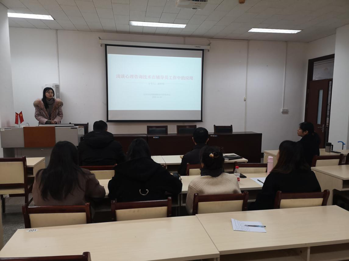 在燕山校区举办学工干部心理健康专项技能培训,特邀我校大学生心理咨询中心盛明明老师做了《浅谈心理咨询技术在辅导员工作中的应用》专题讲座,学院党委书记李国强,党委副书记周炎、吕晓燕和全体辅导员老师参加了活动。
