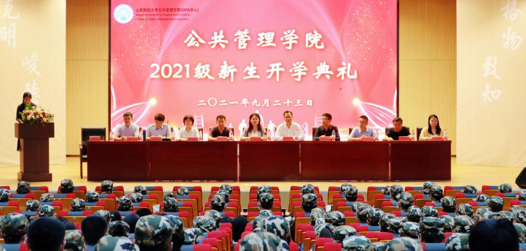 2021级本科生开学典礼在圣井校区大学生活动中心报告厅隆重举行。学院院长兼MPA中心主任张红凤,院党委书记李国强,院党委副书记周炎、吕晓燕,MPA中心副主任牟芳华,副院长贾海彦、罗微,城市与土地资源管理系主任曲衍波,办公室主任李广华,学工办主任张辉,2020级辅导员韩步彤出席典礼,2021级全体新生参加了典礼。本次典礼由院党委副书记吕晓燕主持。