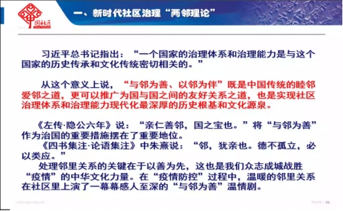 首先,张雷教授介绍了新时代社区治理“两邻理论”——“与邻为善,以邻为伴”,以及新时代关于如何加强社区治理的新思想、新观点,从社区人员流动性、基层治理、社区疫情防控模式等方面论证了社区治理体制机制建设的重要性。