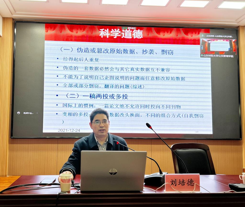 刘培德教授从“科研的目的”“基本要求”和“如何做研究”三方面,为同学们讲述了做研究的基本要求和大致过程。他强调要因为喜欢搞科研而搞科研,做科研要了解本领域的研究学者、重要期刊、研究方法与范式,要严守学术规范,耐得住寂寞。