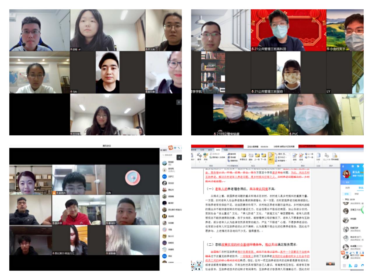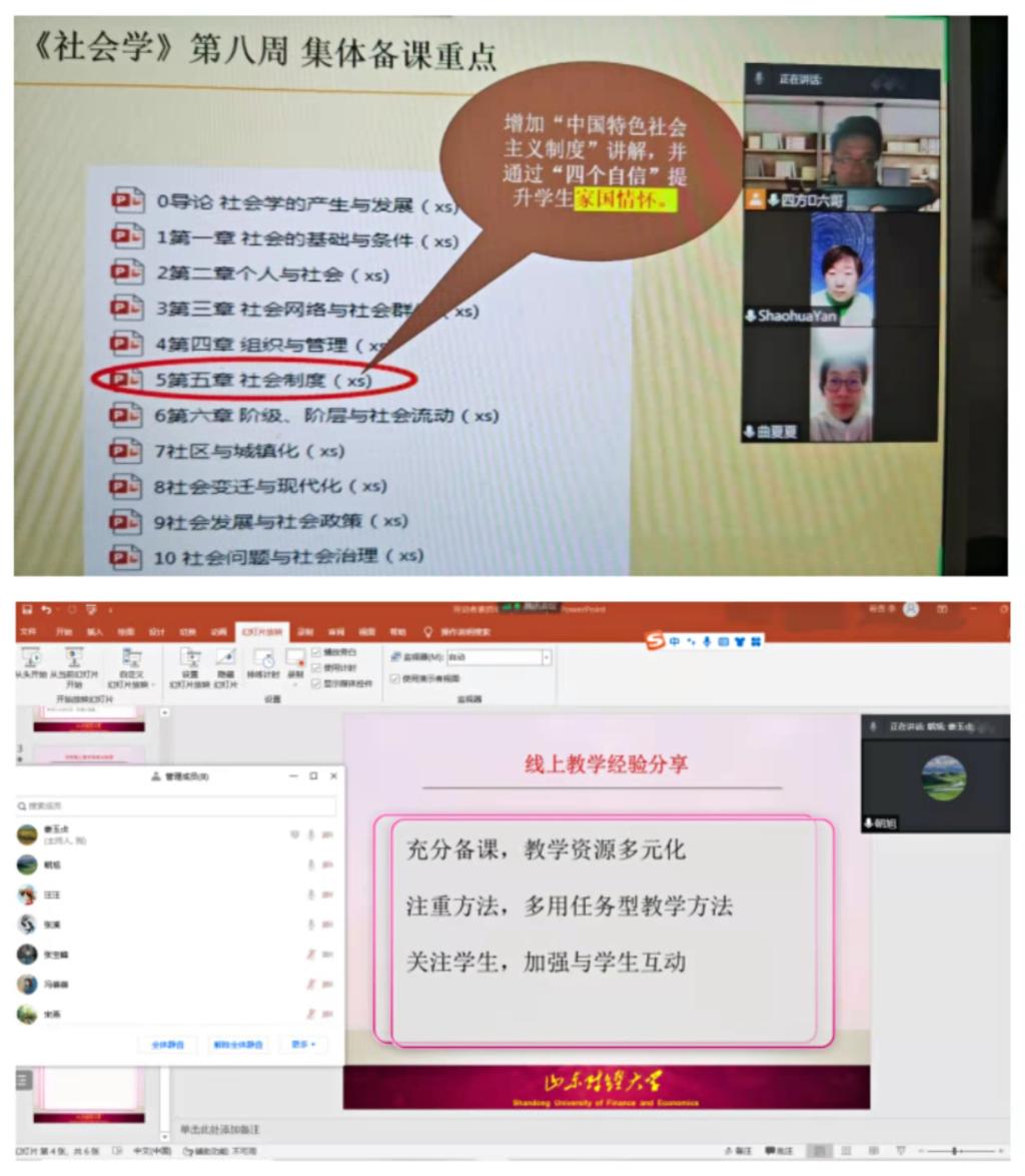 为进一步提升在线教学质量,学院多支教学团队开展线上教学研讨,进行集体备课。首先,各团队老师认真学习了学校线上教学的相关要求,包括:强化教师责任担当,确保线上教学有序进行,加强课程思政建设,加强人文关怀、关心关爱学生等。其次,各团队教师讨论了线上教学面临的难题,比如,如何调动学生积极性,如何加强教学过程管理等,并分享了自己克服这些问题的经验及做法。最后,老师们对各门课程教学过程中遇到的难点和重点问题进行了深入交流,分享了自己探索的教学方法和教学案例。