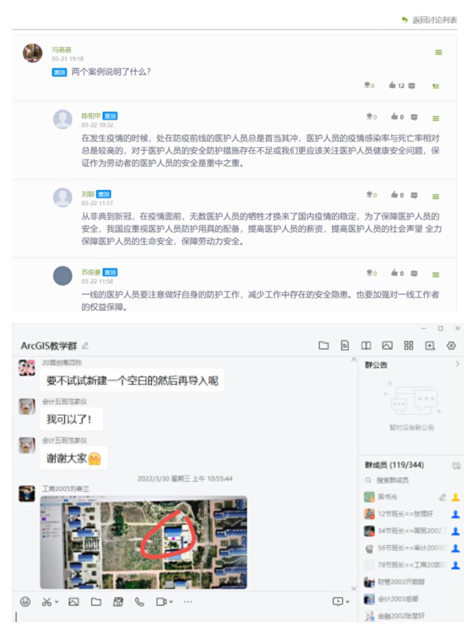 二是基于各种学习平台、微信群或QQ群等开展互动交流,为同学们及时答疑解惑。