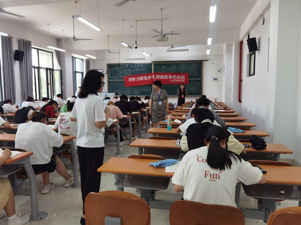 学院组成由党委书记张建和院长贾海彦任组长,院领导班子成员、学团工作人员、系主任、教学管理人员等组成的巡视工作小组,检查本学院学生所在考场的考试组织及考场纪律情况。学院每个考场都贴有诚信考试宣传标语,提醒同学们自觉遵守考试纪律,公平参与考试竞争。