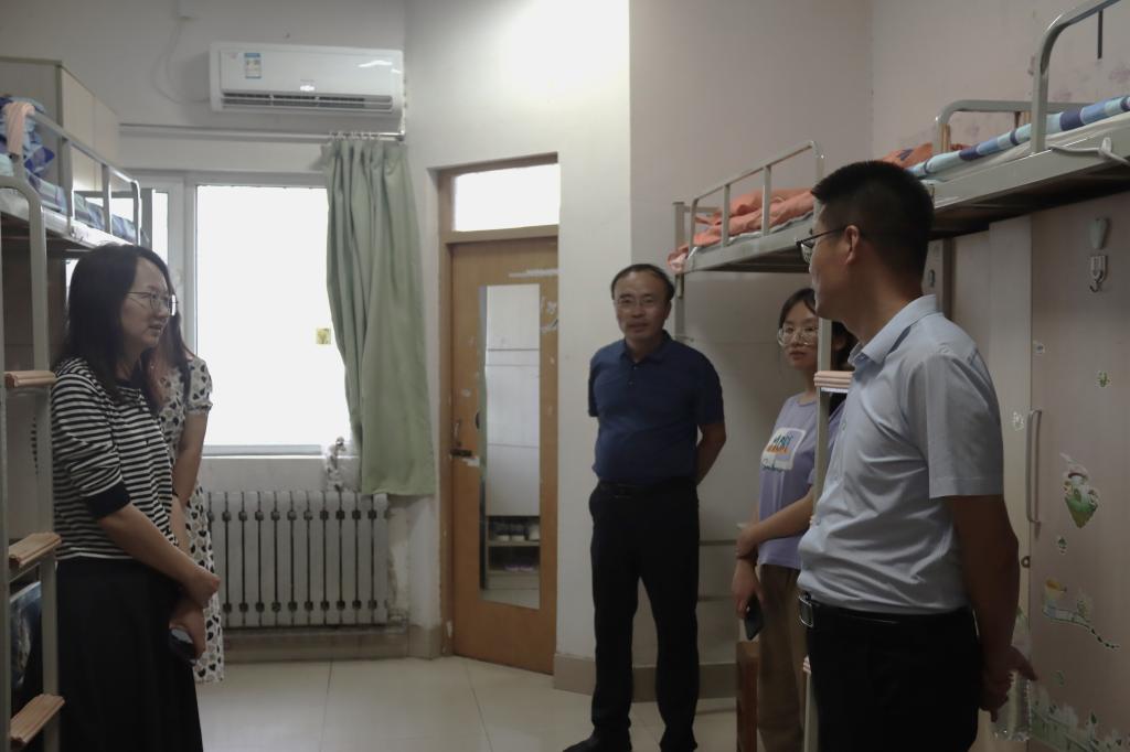 学院领导来到女生宿舍,同新生们聊天话家常,关心询问新生们是否适应大学生活,以及对大学生活的期许与规划。在此期间,张建提出,希望大家早日适应宿舍生活,友好相处、互帮互助,营造温暖的公管大家庭。