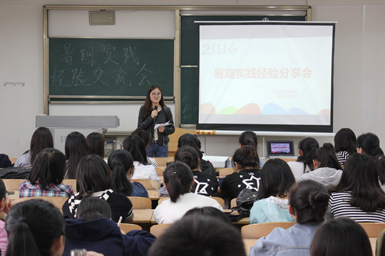 获得“省级大学生优秀社会实践团队”的队长张晓阳、朱诺也分别与大家分享了各自团队在15年的暑期社会实践经验,从不同的角度阐述了社会实践的重要性。参与暑期社会实践,不仅能为毕业后踏入社会积累经验,还能提高自己的团队合作能力,这些实战经验和调研体会,对于以后的学业和求职都有很大帮助。成功的调研项目,还有可能获得省级、国家级奖项。最后,优秀队员王凝为大家详细介绍了参加社会实践的具体过程以及注意事项。