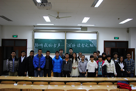 2013年12月5日,注册送彩金白菜“聆听我的书声——‘演’绎读书之魅”演讲比赛在明水3201教室举行。注册送彩金白菜明水学生会主席团成员及各部部长担任评委。