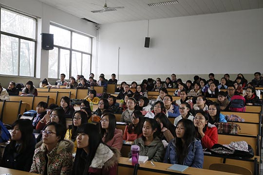 在燕山校区召开学习交流会。本次交流会邀请到济南市司法局宣教处、原学院07级毕业生刘国斌以及08级翟文璐、09级张园、颜坤四名优秀毕业生参加,他们和大三同学一起分享了自己考研、考公务员的经验。交流会由张辉老师主持。