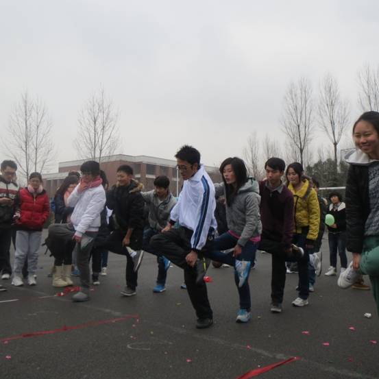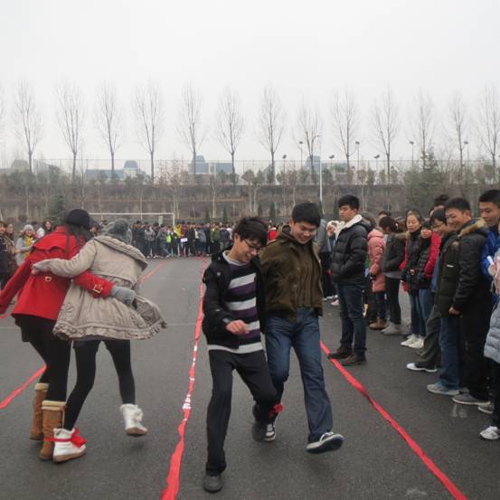 虽然在寒冷的天气下举行,但依然阻挡不了同学们参与游戏,享受竞技的热情,首先进行跳绳接力,比赛一开始,行政二班宋健同学健步如飞的气势震撼了全场,活跃了全场气氛。紧接着的协同接力、背夹篮球等接力项目,考验了同学们之间的默契配合,跌倒与坚持同行,落后与超越同在。最后的盘腿前行,每支队伍伴随着场上响亮的呐喊声前进,更是将现场观众的热情推向高潮。