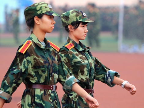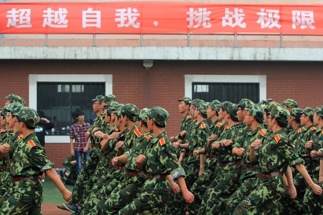 汗水都浸透了军训服 但大家依然坚持训练