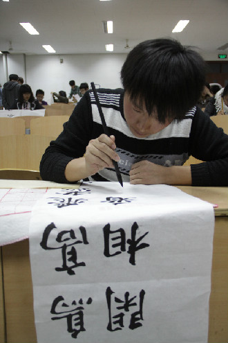 第四届“翰墨杯”校园书画大赛在明水3101、3102举行。全校共有近百名同学到场参加比赛。