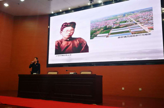 报告会上,讲解员通过放映《共和国脊梁》、《以身许国》、《永怀》3部纪录片和展示500多幅图片,再现了郭永怀为我国“两弹一星”研制、为人才培养而执着奋斗的感人事迹。郭永怀出生在山东荣成,从小天资聪颖,相继进入南开大学、北京大学攻读工科。抗战爆发后,郭永怀怀着救国救民的壮志雄心由工科转读航空工业,出国后攻读流体力学,解决了国际上公认的难题——“声障”。新中国成立后,郭永怀放弃国外声名显赫、生活富足的优越条件,毅然回国,和钱学森、钱伟长等人一同开创了近代中国物理研究的开端。在新中国建设之初,他奔赴祖国的大西北,用毕生所长和其他科研人员一起在艰苦的环境下投身科学研究,为祖国的国防事业做出了巨大的贡献。在获取到珍贵数据后,他不顾夜航危险,乘机回北京报告,却在降落时因飞机起火而不幸遇难,就在生命的最后一刻,他还奋不顾身,用身体为祖国掩护了那一组珍贵的数据。