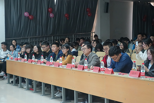 在比赛中,9名选手分别围绕青春、怀旧、梦想、自信、对细节的态度、对自己的勉励等几个主题进行了声情并茂的演讲,时而慷慨激昂,时而深情款款,时而发人深省,脱稿演讲水平和临场发挥能力不时博得同学们的阵阵掌声,将气氛一次又一次推向高潮,评委们精彩独到的点评也使在场同学们获益匪浅。张原同学的演讲《青春》点燃了全场的氛围,他用饱满的热情向我们诉说,青春是对奋斗的责任、对社会的感恩和对祖国的担当。王明昊同学的演讲《你的世界让你没有理由不自信》,以自身经历为切入点,句句精到,声声深刻,引起同学们的强烈共鸣。为增加比赛的趣味,比赛精心设计了两个歌曲类节目和中场小游戏《飞花令》,用以活跃现场氛围。