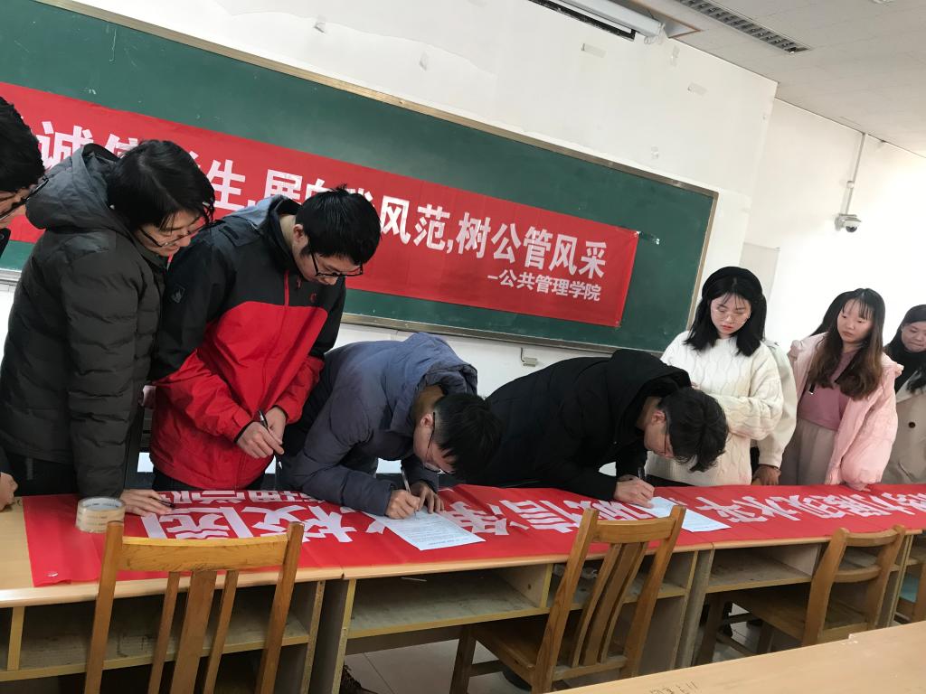召开“做诚信学生 树公管风采”诚信教育主题活动,活动分别在燕山校区和明水校区举办,学院辅导员担任主持,全体同学参加了活动。