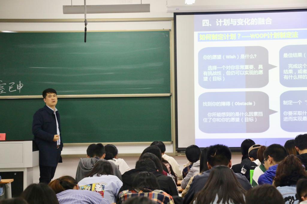 有同学可能对自己现在的生活、学习、专业等方面并不是很满意,甚至这些本来就是他们计划之外的结果、预料之外的变化。曲教授告诉大家,我们面对这些变化的态度不应该是自怨自艾,丧失斗志,而是通过一个又一个目标的实现,通过对计划的不断评估与修正,慢慢地向我们的目标靠近,让现实不断贴近我们的计划。