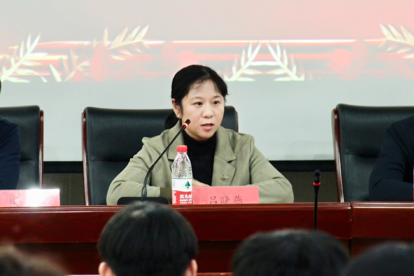 党委副书记吕晓燕书记发表讲话。她首先对第八届学生会的成立表示热烈的祝贺,对第七届学生会成员表示衷心的感谢,并强调了学生会存在的意义和责任。吕书记指出,学生会要发挥好师生间纽带和桥梁作用,团结一心,注重志愿者精神的培养和个人能力的提升,学生会干部要志存高远,更要严格要求自己。此外,吕书记还对学生会成员提出了殷切期望:要有坚定的理想信念,更要树立良好的政治意识、服务意识和责任意识;培养正确积极的政治意识形态;做好师生间的沟通工作,不驰于空想,不骛于虚声;做到工作学习两不放弃,发挥好参谋、组织、领导作用。最后,吕书记回顾了过去一年学生会的优秀工作成果,并展望了学生会美好的未来。