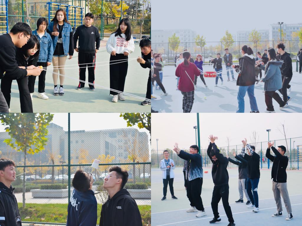 本次素质拓展活动共设置了“缘来是你”、“照葫芦画瓢”、“同心击鼓”、“纸杯传不掉”、“滚雪球”、“线上乒乓球”六个游戏。在随机分组完成后,各组同学齐心协力设计了队旗,在阵阵欢笑声中迅速打成一片。在游戏过程中,为了团队的胜利,同学们团结一心迎难而上,群策群力不断精进,在锻炼自己人际交往能力的同时也充分体会到了信任与团结的重要性,为日后各部门之间的默契合作打下了坚实的基础。
