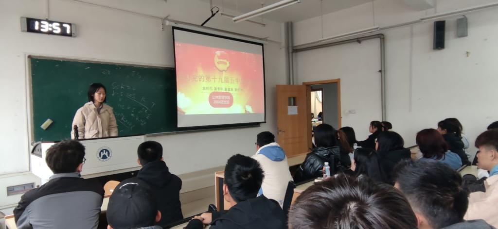 结合“青年大学习第十季特辑”学习十九届五中全会精神主题团课,各团支部积极收集相关资料,在团会上采用放映PPT、播放视频、展开讨论、抢答题目等形式,深入学习了全会精神,共同探寻了这份历史交汇点上的宏伟蓝图。党的十九届五中全会充分肯定了党的十九届四中全会以来中央政治局的工作;高度评价了决胜全面建成小康社会取得的决定性成就;深入分析了我国发展环境面临的深刻复杂变化;提出了到二〇三五年基本实现社会主义现代化远景目标以及“十四五”时期经济社会发展指导思想、主要目标和“五个坚持”重要原则;号召全国各族人民要紧密团结在以习近平总书记为核心的党中央周围,团结一心,顽强奋斗,夺取全面建设社会主义现代化国家新胜利。