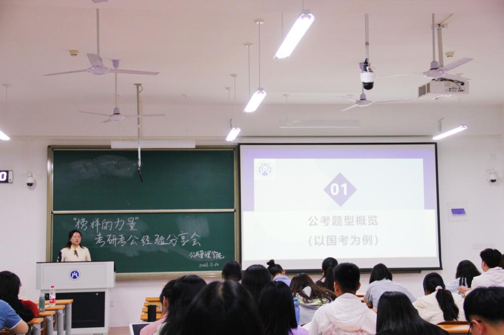 于5月10日下午六点半,在圣井校区8312教室成功举办 “榜样的力量”优秀学长学姐考研考公经验交流会。同学们踊跃报名,积极参加。