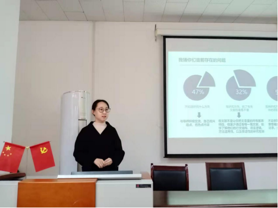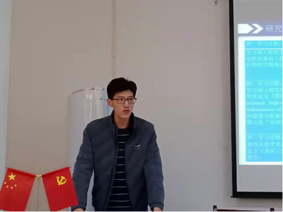 周炎副书记对本次分享会作了简单介绍,讲明了会议的目的和流程。随后,他为大家介绍了两位主讲研究生的基本情况。