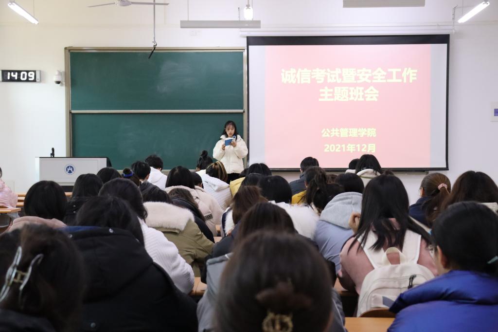 于圣井校区8104、8106教室召开诚信考试暨安全工作主题班会,会议由2020级辅导员韩步彤、2021级辅导员张辉主持,注册送彩金白菜