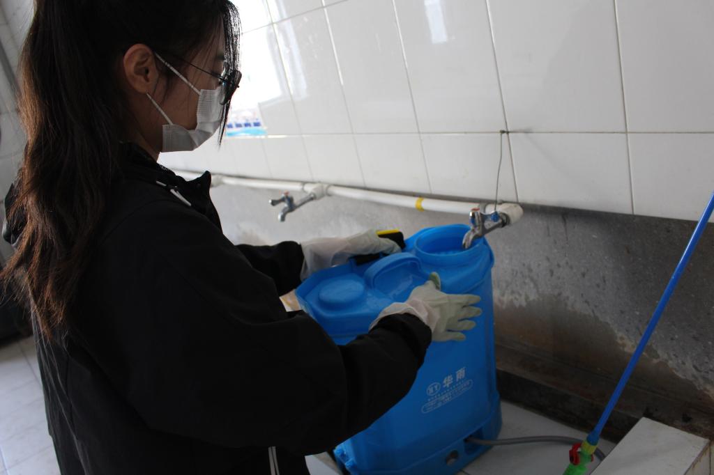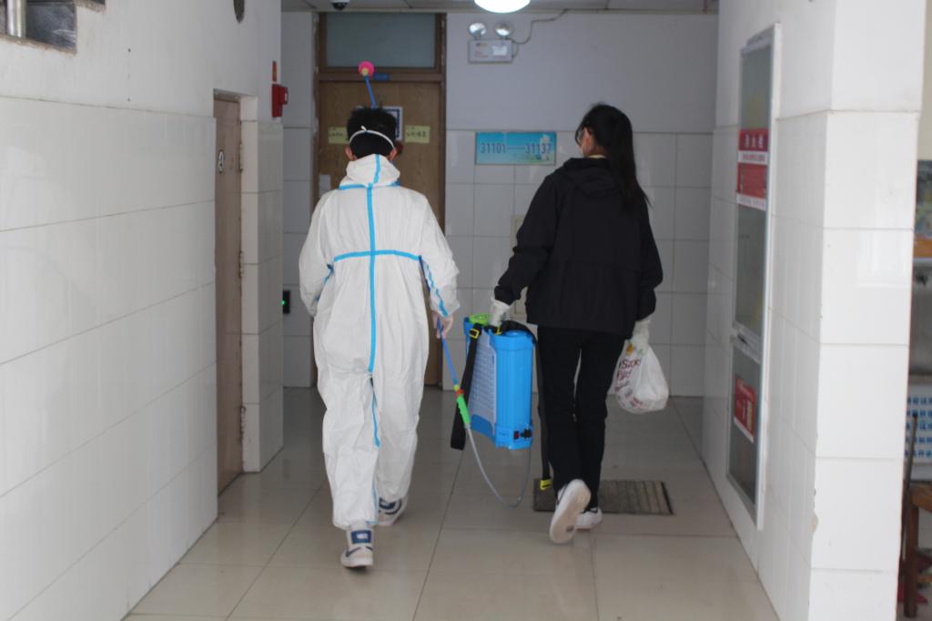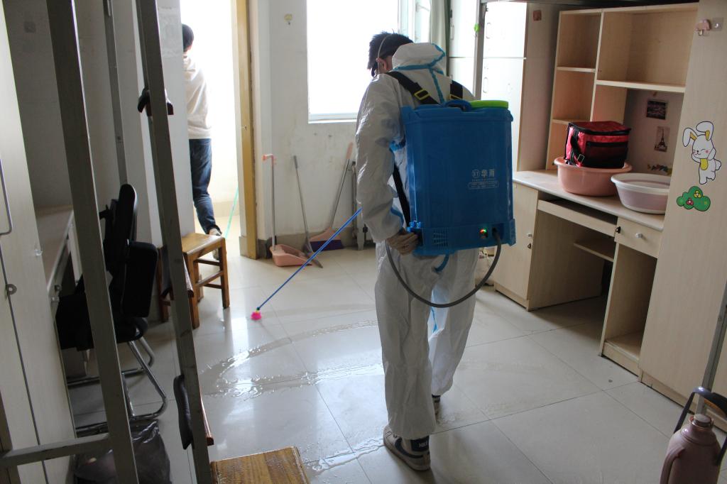 宿舍进行消毒,由干事廉兴旺、何健光负责9、5、3号学生公寓的消毒工作,干事龚莉、戴良辰负责8、4、3号学生公寓的消毒工作,其中3号学生公寓的消毒工作两组共同负责。