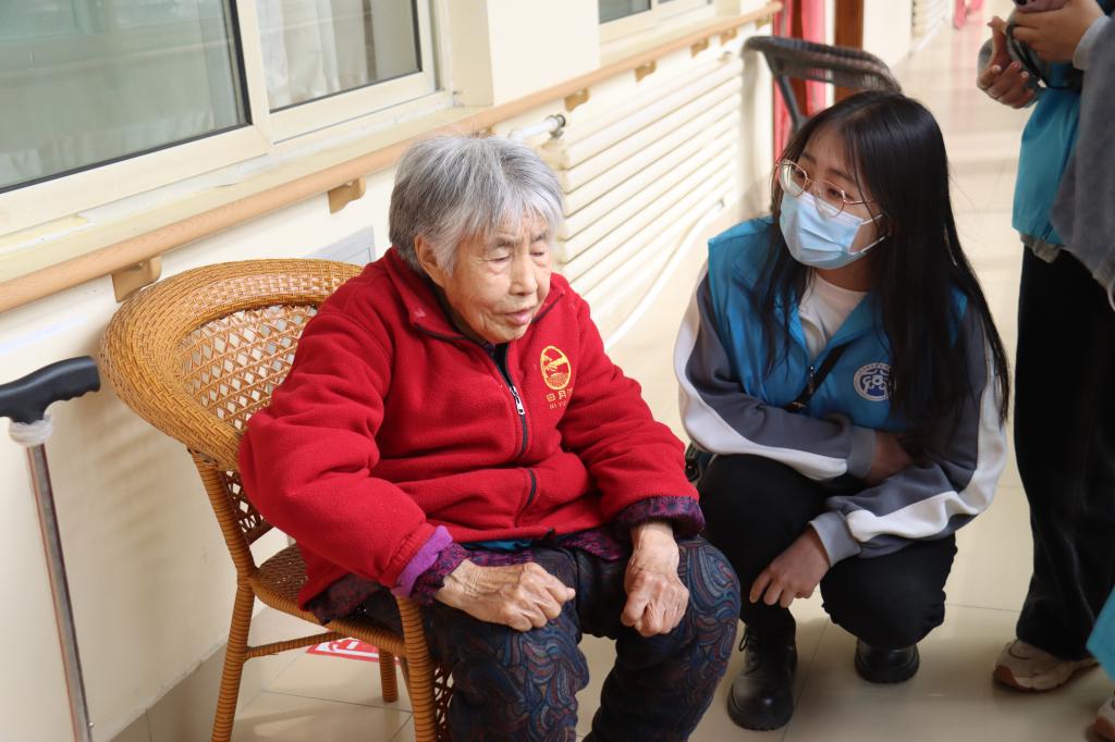随后,志愿者们自发前往老人们的住处探望老人,同老人们聊天话家常,关心询问老人们的身体健康与生活状况,并帮助老人做一些力所能及的家务事。在此期间,有志愿者向一位爷爷问及他年轻时的经历,爷爷滔滔不绝地讲述起战争的混乱与残酷。他双眼发亮,神情悲愤,仿佛重回那段激情飞扬的青春岁月。