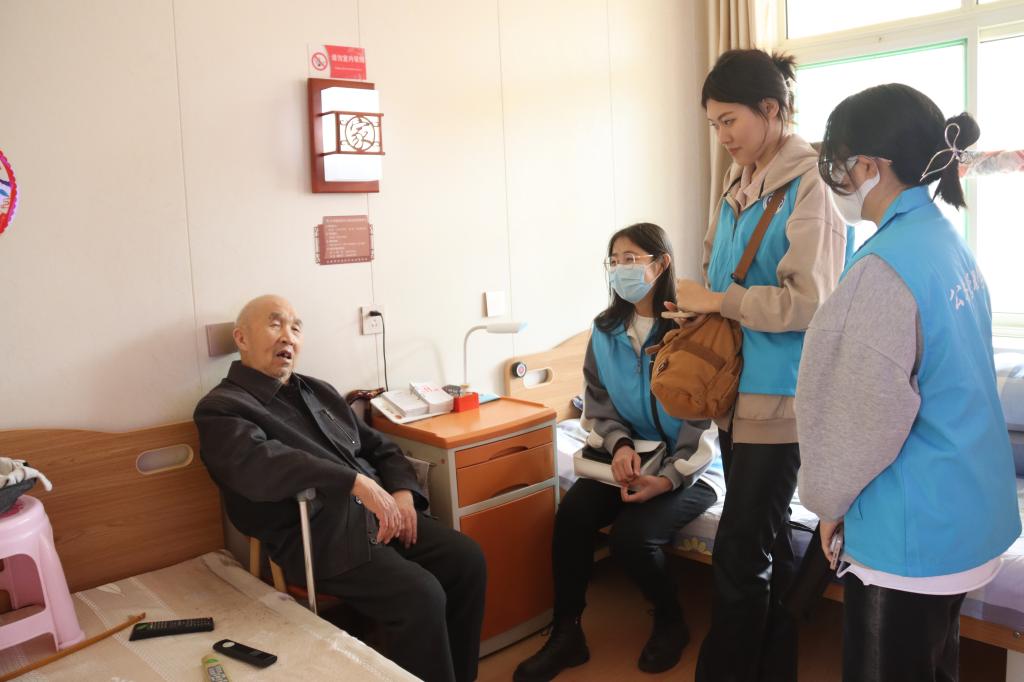 组织大学生事务发展部同学来到了济南市章丘区日月潭养老中心看望老人,用实际行动帮助老人做事,关爱老人生活,为老人们送温暖。