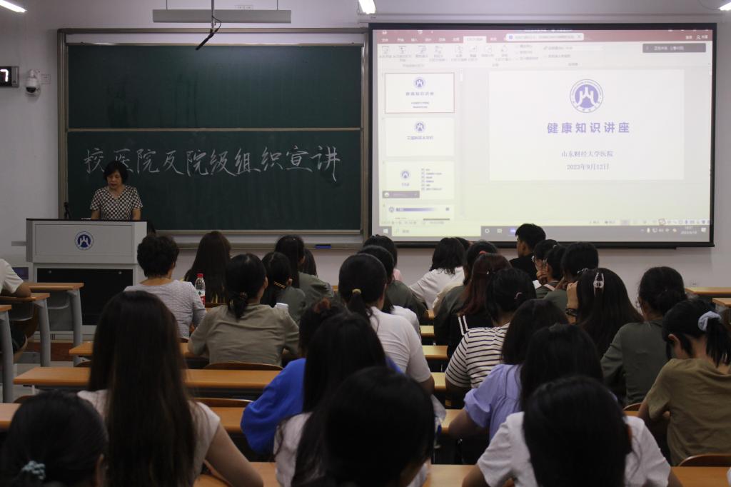 (通讯员 张心仪 摄影 周蓝梦)为普及健康卫生知识,让新生们理性正确地预防疾病,9月18日晚上,健康卫生知识普及宣讲于圣井校区8108教室召开,此次宣讲由校医院李荣院长主讲,2023级同学参加。