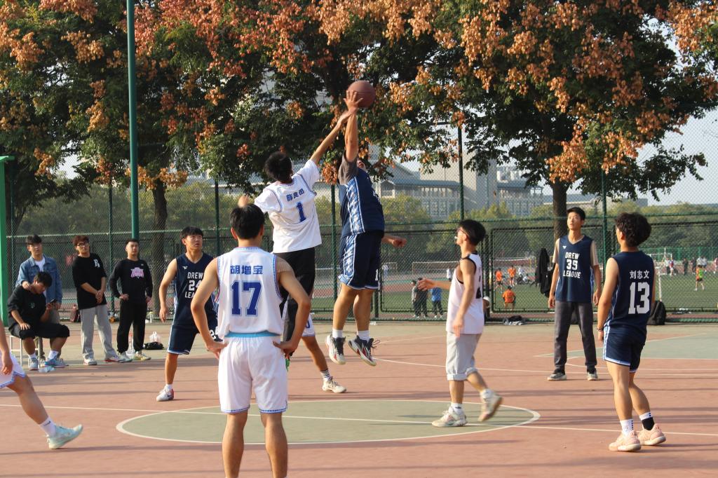 篮球撞击地面,蕴含力量的身影飞快地跳跃,成了一道道模糊的影子。今日凉风习习,队员们的衣衫却被汗水浸湿,然而却无人停滞,也无人懈怠,大家全身心投入比赛中,意气风发的氛围让每一个人都被运动的魅力深深吸引。