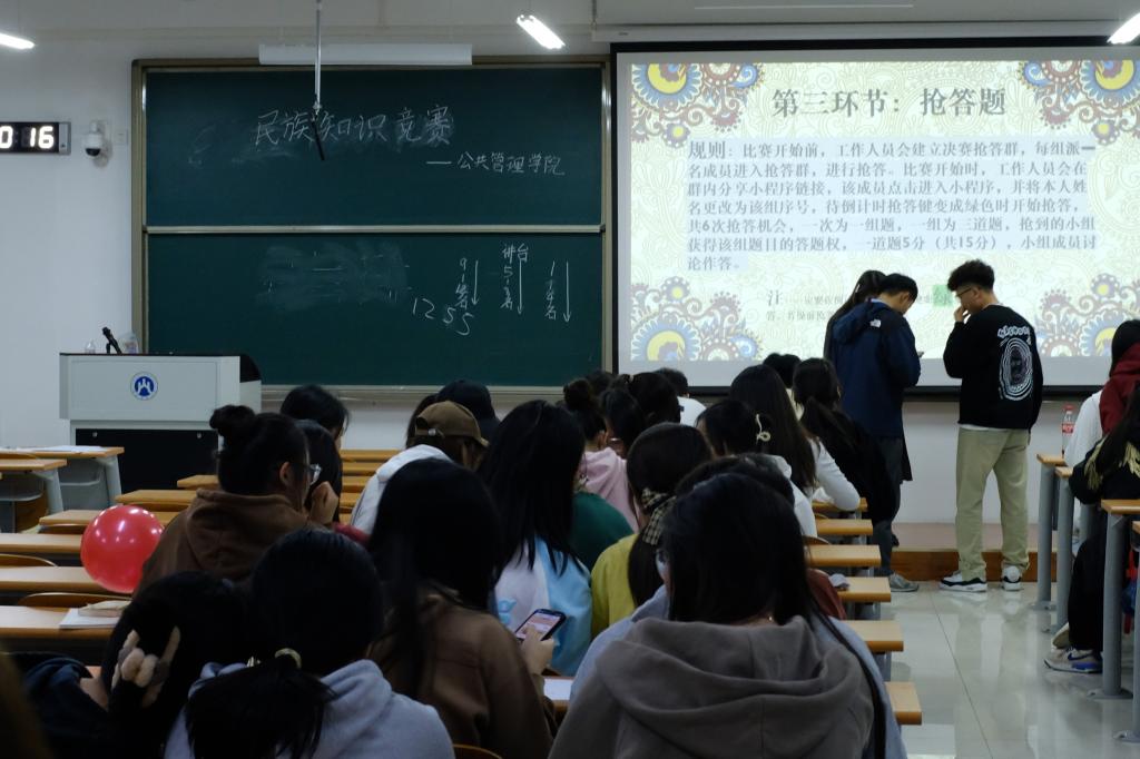 (通讯员 张敏 杨政利 摄影 刘珂瑜 何叶)为扎实推进民族团结教育,全面落实党的教育方针和民族政策,10月27日晚,学院于圣井校区8-208、8-210教室成功举办了民族知识竞赛。此次竞赛由学院民族事务部组织,2021、2022、2023级同学参加。