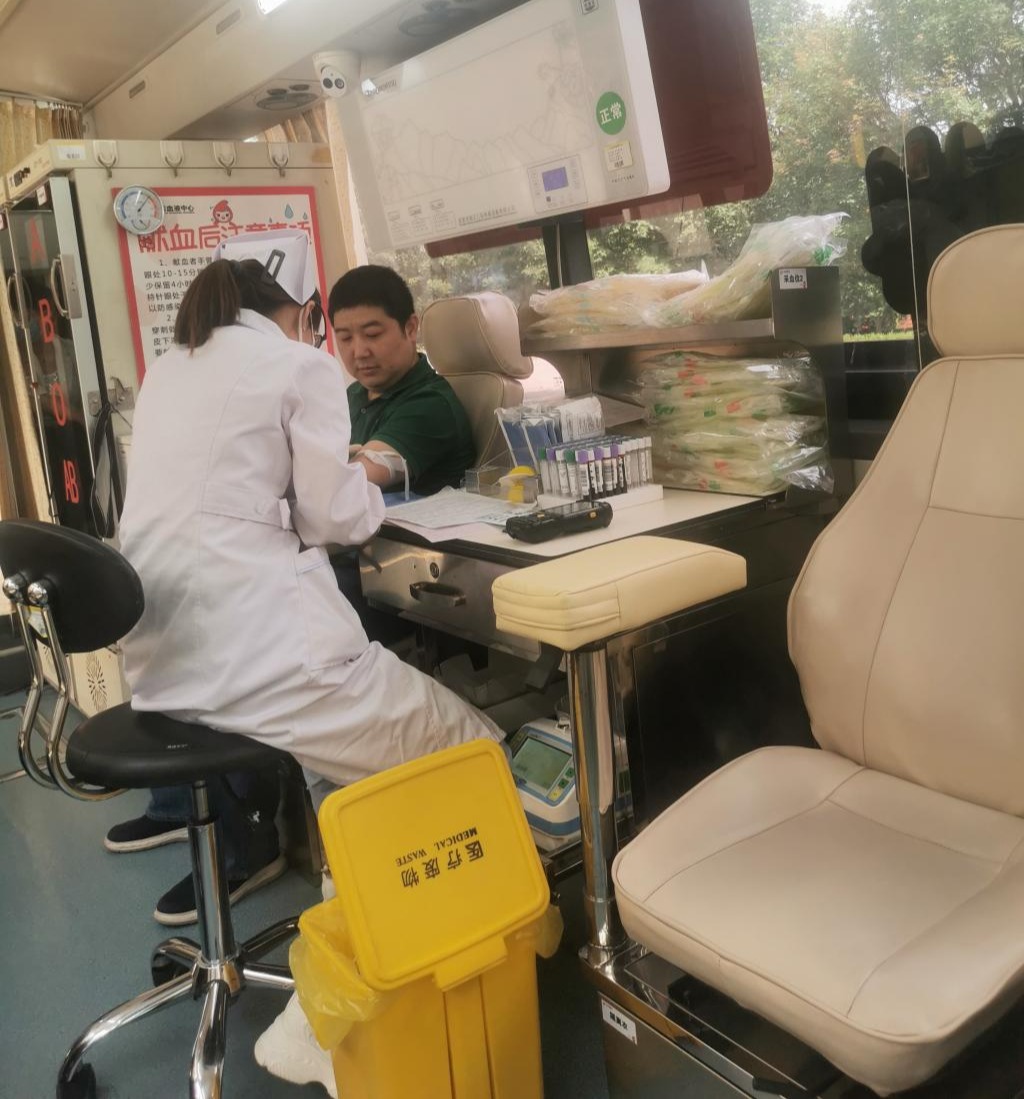 当采血车停靠在逸夫楼门前,师生们早已在此排队等候。填表、检测、量血压、血液初筛,采血车前上演了一场感人的爱心接力,师生自发献血筑起的爱心长龙,成为燕山校园里最亮丽的一道风景线。
