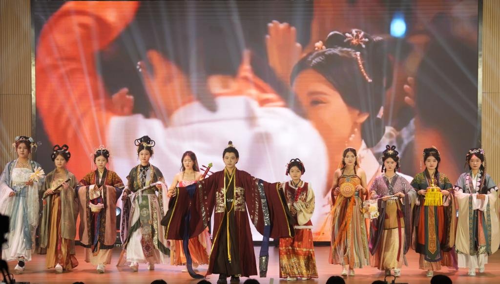 汉服走秀《镂云裁月》为观众带来一场视觉盛宴,舞转回红袖,歌愁敛翠钿,含情独摇手,双袖错落列,无不饱含古韵美感。