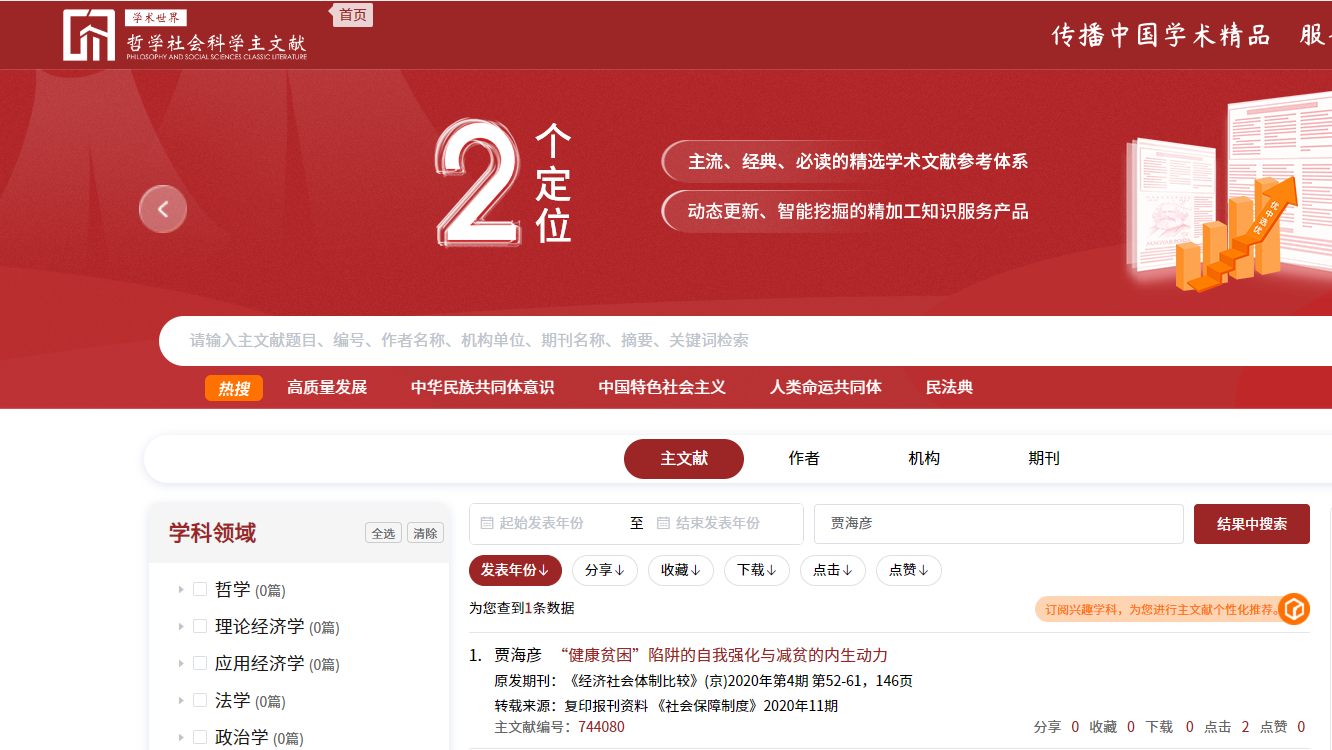 近日,由中国人民大学建设的中国哲学社会科学自主知识体系数字创新平台之“主文献体系”平台发布了2013-2022入选论文。注册送彩金白菜