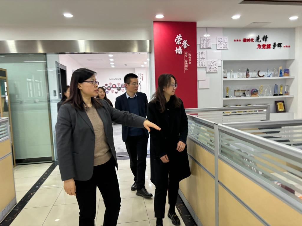 在参观过程中,山东区域公司助理总经理王成功与人事行政部经理弓清文带领学院老师来到公司办公区域,深入了解该企业的运营模式、注册送彩金白菜、党建成果等。