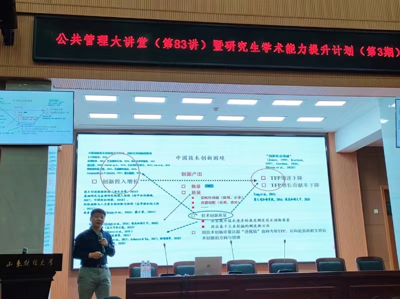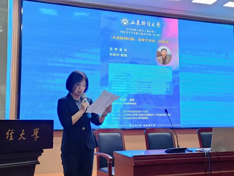 举办公共管理大讲堂(第83讲)暨研究生学术能力提升计划(第3期)。院长贾海彦教授、副院长姜琪教授主持会议,武汉大学经济与管理学院叶初升教授做了题为“从论题到问题:发现学术的三个维度”的演讲,学院教师以及2022、2023级全体硕士研究生参加了此次讲座。