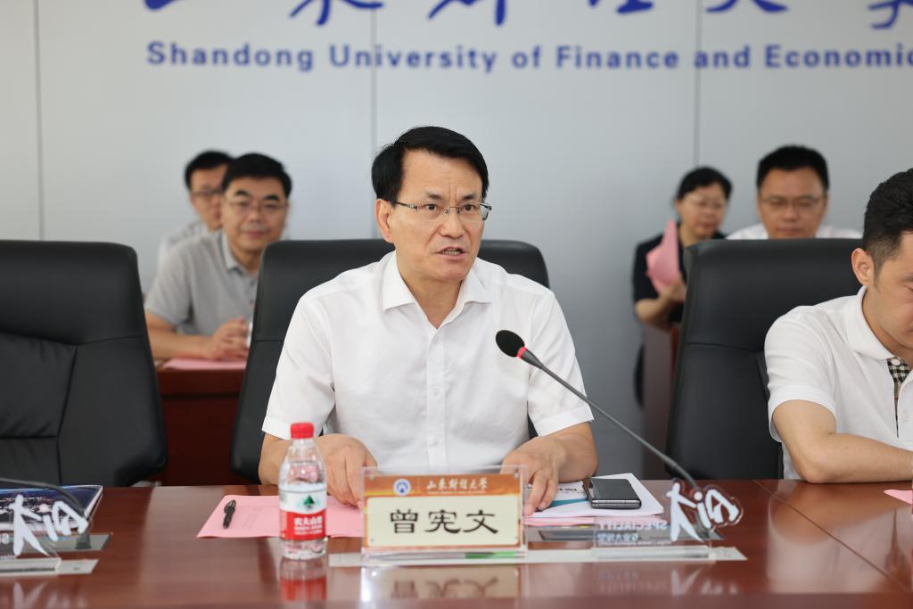 发布会前,校党委书记查玉喜会见了曾宪文一行,介绍了学校第二次党代会确定的发展目标和发展思路,并向山东省教育厅对学校人工智能赋能教育教学改革的支持表示感谢。查玉喜表示,学校将以此为契机,不断推动教育教学工作高质量发展,为培养更多高素质财经人才做出更大贡献。