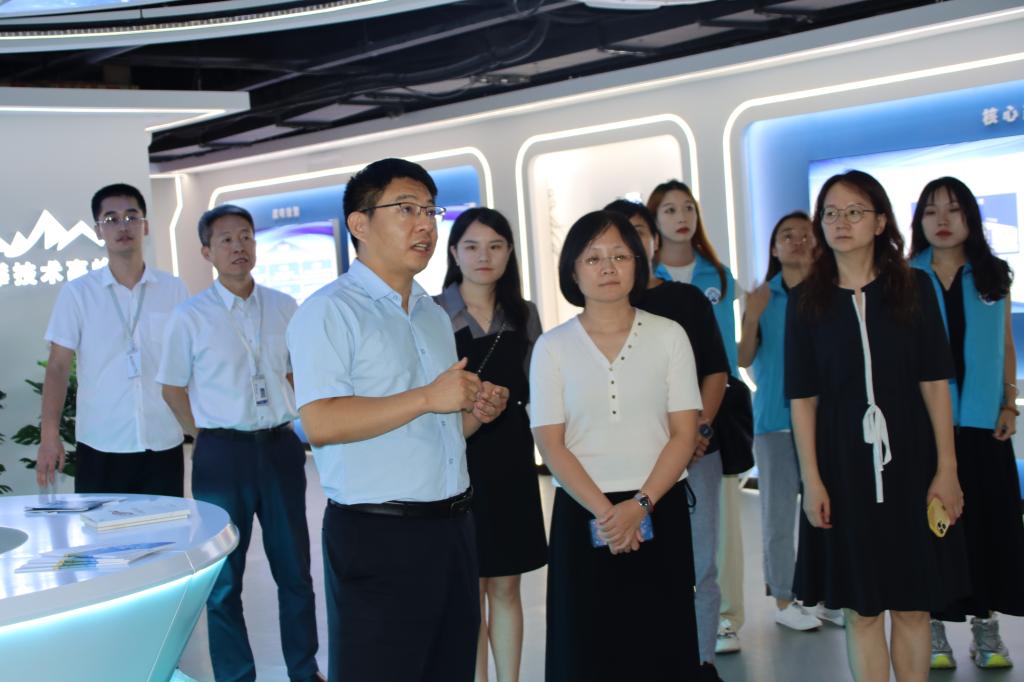 会后,姜健总经理带领公管师生一行参观了云数智一体化展厅,深入了解了山东国数在人工智能、云计算、大数据、大模型、产业大脑以及工业数字化等领域的技术优势。