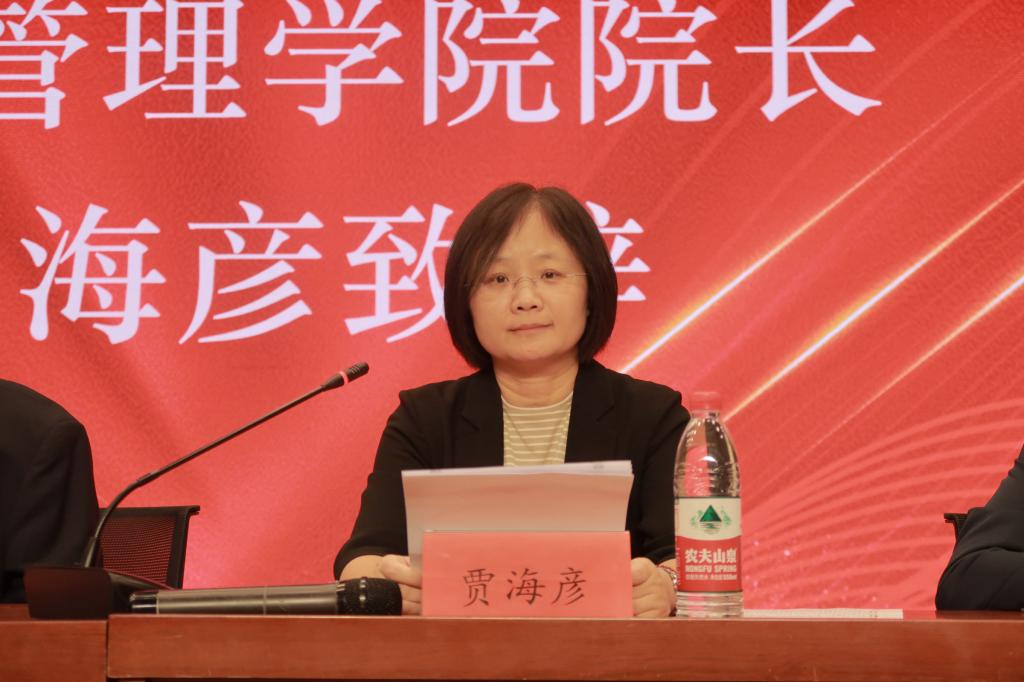 开学典礼在雄壮的国歌声中正式拉开序幕。院长贾海彦致辞,她代表学院对2024级新生表示热烈欢迎。贾海彦回顾了学院的发展历程及近年学院发展取得的成绩,表示学院将为同学们提供良好的发展平台,并提出对同学们的殷切期望,期望同学们坚守品德,勤奋学习,海纳百川,求真务实,厚植爱国情怀,严格遵守制度,将自己的小我融入公众的大我之中,在新的征程上持续绽放青春光芒。