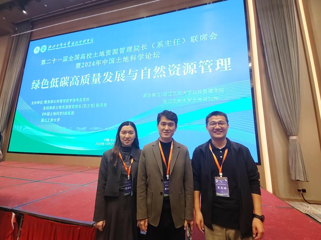 曲衍波副院长携城市与土地资源管理系张丝雨、王立业等教师参加会议。本次会议由教育部公共管理教学指导委员会、全国高校土地资源管理院长(系主任)联席会、《中国土地科学》编辑部、浙江工商大学主办,由浙江工商大学注册送彩金白菜
